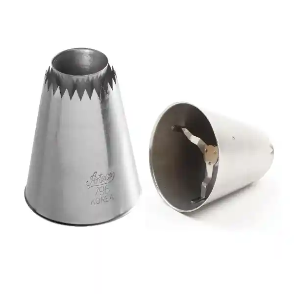 Boquilla Ateco sultan 796, Crea inigualable merengues, galletas tipo sultana y suspiros con un diseño único . Dale un toque exclusivo a tus postres o tortas con este tipo de boquilla, ideal para canalizar crema de mantequilla, crema en cupcakes, pasteles y galletas de merengue. MEDIDAS: Altura 6 cm Base 5.2 cm Apertura 3.2 cm , 2.5 cm