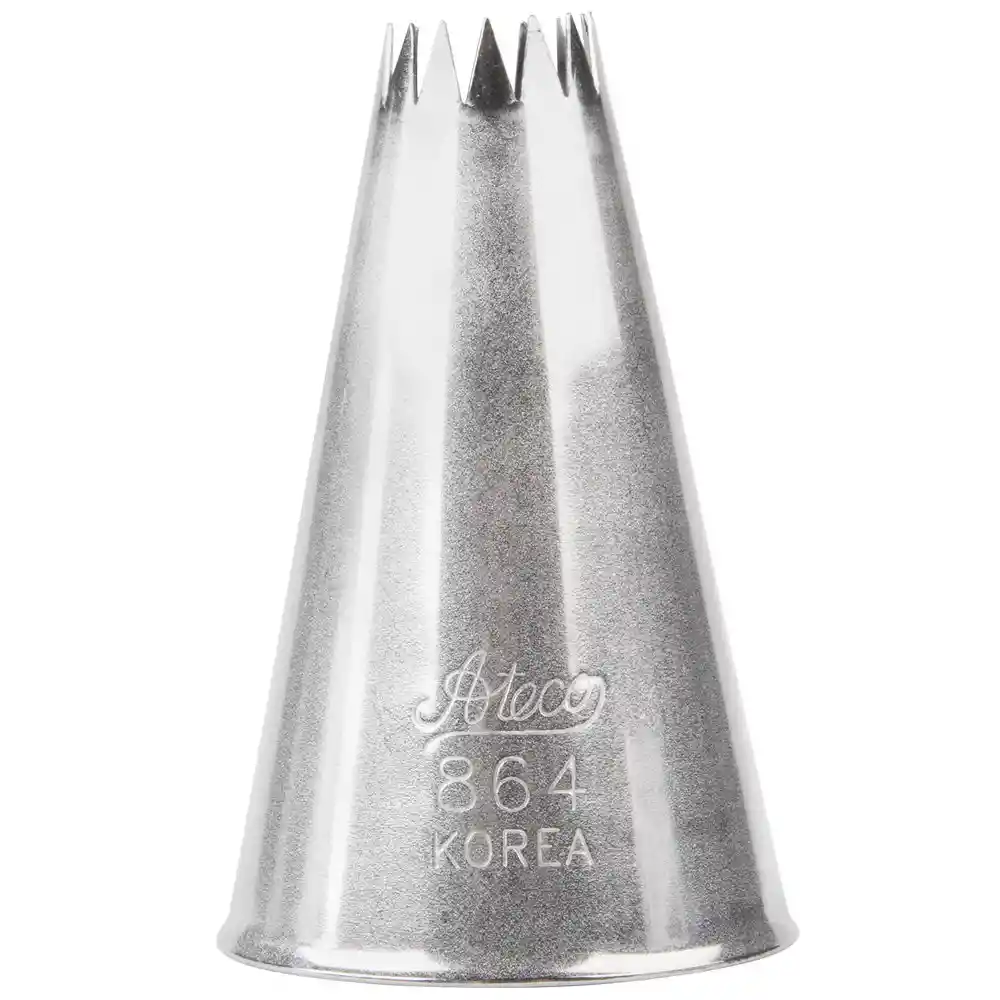 Boquilla Ateco corte de estrella abierta de 14 puntas, agregue fácilmente glaseado con estrías leves a sus tartas, cupcakes y tartas, ideal para crear conchas, estrellas, flores de lis, rosetas y flores. El diseño de estrella abierta produce una textura sutil ideal para una presentación suave. Medidas Base 3 cm Apertura 1.2 cm