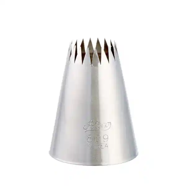 Boquilla Ateco corte de estrella abierta de 18 puntas, agregue fácilmente glaseado con estrías leves a sus tartas, cupcakes y tartas, ideal para crear conchas, estrellas, flores de lis, rosetas y flores. El diseño de estrella abierta produce una textura sutil ideal para una presentación suave. Medidas; Altura 5 cm - Base 3.5 cm -Apertura 1.8 cm
