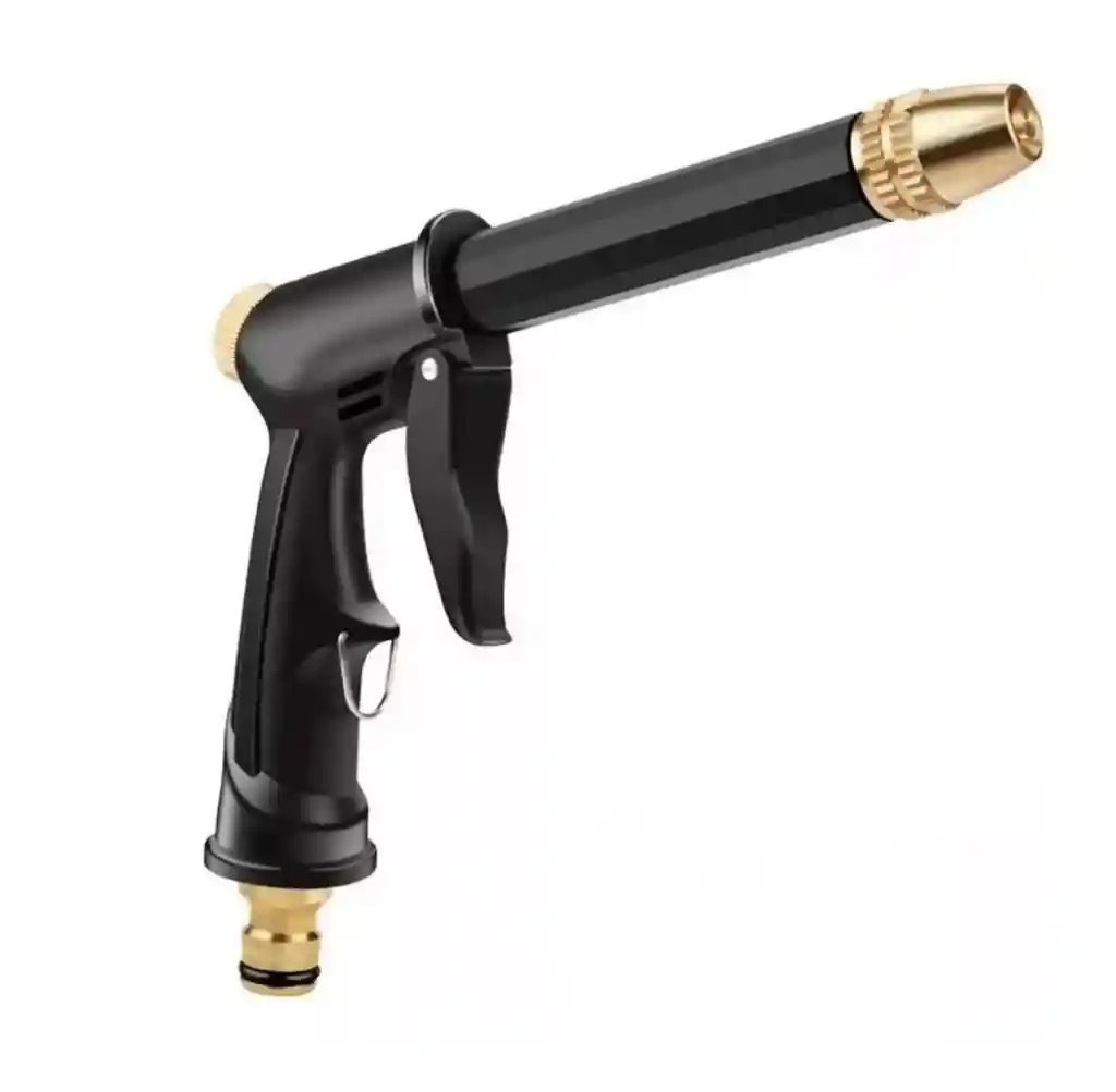 Esta boquilla para manguera de jardín es más resistente y duradera que las de plástico, ideal para limpiar coches, patios, terrazas, ventanas y más. Fabricada con materiales ecológicos, soporta altas presiones de agua sin dañarse, mientras que su diseño de una sola pieza con ojales de goma garantiza un sellado hermético para evitar fugas. Su estructura ergonómica, con un barril más grueso y largo, ofrece un agarre cómodo y una mayor presión de agua. Versátil y fácil de usar, es perfecta para riego, lavado de pisos, vehículos y baño de mascotas, brindando máxima eficiencia en cada tarea. Ficha Técnica: Dimensiones: 18,5 cm x 14 cm Función: Lavado de coches, limpieza del hogar, presurización, multifunción Tipo de pulverización: Cabezal de ducha recto a granel Presión del agua: Alta presión, agua del grifo Distancia de pulverización: 10 m Ámbito de aplicación: Lavado de coches, riego Materiales: Cuerpo y mango: Plástico de ingeniería Boquilla: Aleación de aluminio y plástico Marco: Plástico ABS Peso neto: 100 g Para defectos de fábrica o retractos: Por favor revise el producto apenas lo reciba y antes de usarlo. No aplican ley de retracto o defectos de fábrica luego de usar el producto. Se manejan máximo 5 días para reportar defectos de fábrica (por ejemplo, producto funciona mal, piezas faltantes, rotas, etc). Para hacer efectiva la devolución el producto debe devolverse con el empaque original, el cual debe estar en buen estado, incluir todos los documentos y las partes completas y sin daños.