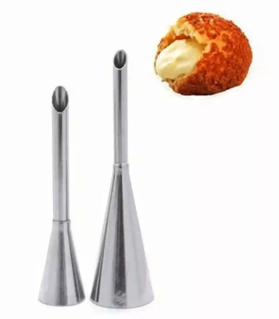 Boquilla inyectora para relleno. Material acero inoxidable. Ideal para relleno de pastel es, cupcakes, repollas, postres y más. El paquete incluye 2 boquillas de relleno en acero inoxidable.