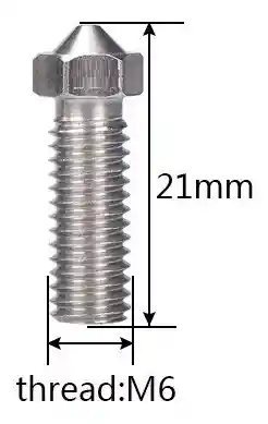 Tamaño: Longitud 21mm Tamaño Hexagono: 7mm Material: Acero Inoxidable Diametro orificio extrusion: 0.4mm Diametro exterior: 6 mm Conveniente para el filamento: 1.75mm LA COMPRA INCLUYE: 1X BOQUILLA VOLCANO 0.4mm