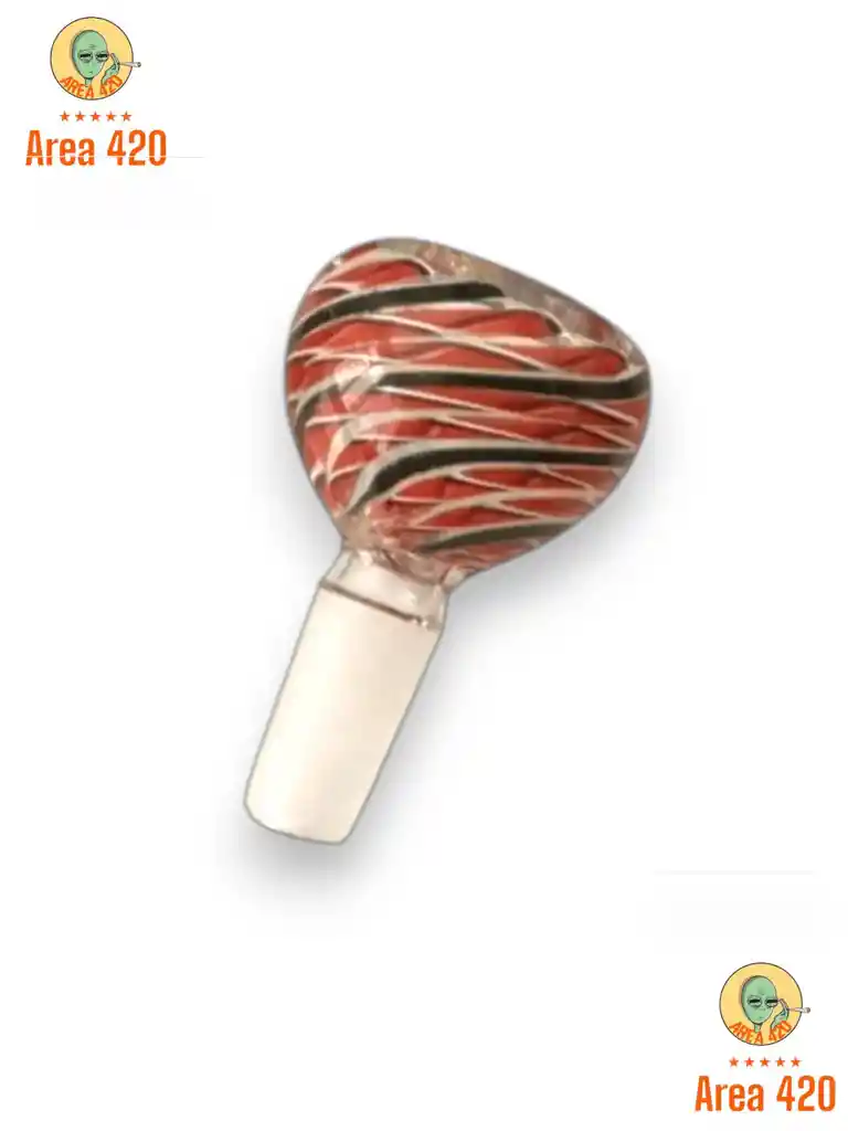 Este bong es un accesorio de vidrio artístico soplado, con diseño curvo estilo “cuello de cisne” y base redonda tipo esfera. Tiene detalles en tonos rojos y dorados que le dan un acabado elegante y llamativo. 🔥