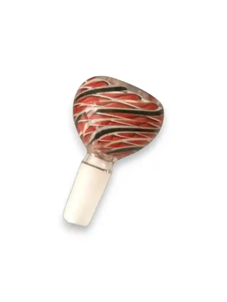 Este bong es un accesorio de vidrio artístico soplado, con diseño curvo estilo “cuello de cisne” y base redonda tipo esfera. Tiene detalles en tonos rojos y dorados que le dan un acabado elegante y llamativo. 🔥