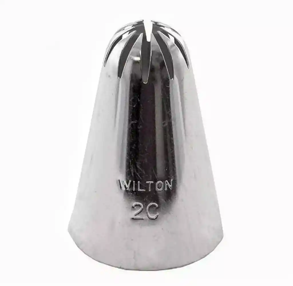 Boquilla Wilton. Referencia 2C. Material acero inoxidable. Decora tus tortas, cupcakes, postres y más con esta boquilla de la marca Wilton. Medidas de la boquilla 4 Cms de alto. Diámetro de la base 2.5 Cms. Pico 1 Cms.