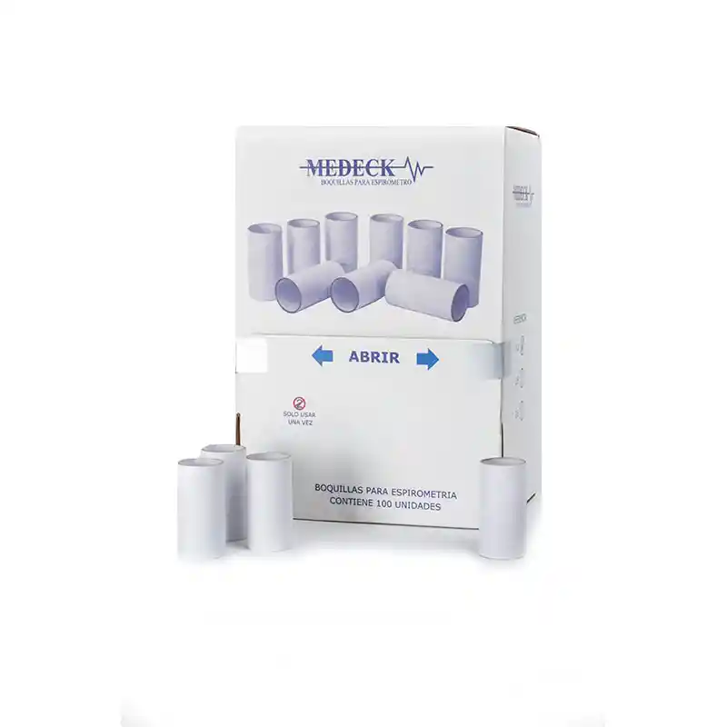 UNIDAD DE VENTA: CAJA CON DISPENSADOR X 100 UNDS. BOQUILLAS EN CARTON DE 30 MM HECHAS EN PAPEL KRAFT. PAPEL BOND Y PEGANTEUSO: COMPATIBLE CON TODAS LAS REFERENCIAS DE ESPIROMETROS MARCA MIR. CONTEC. OTROS