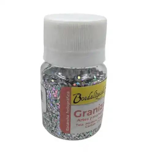 El granizado es una escarcha gruesa, que forma rayos de brillos intensos con un acabado en puntos de reflejos dan una gama de brillo más intensa y con forma más vistosa parecido a un empedrado o joyería. Tienen una forma hexagonal.