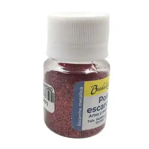 Se puede crear diferentes técnicas de decoración con los polvos escarchados, para agregarle brillo a los diseños, y además genera un reflejo de luz con el efecto metálico. Con brillo metalizado intenso. Uso en superficies de tela, foamy, icopor, madera, cerámica, yeso, marmolina etc. con ayuda de un pegante para escarchas