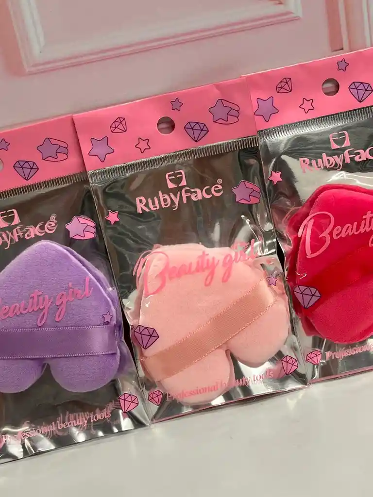 Borla colores hecha en terciopelo, suave para maquillaje, como bases y cosméticos solidos y líquidos, es lavable y reutilizable. Forma de corazón.