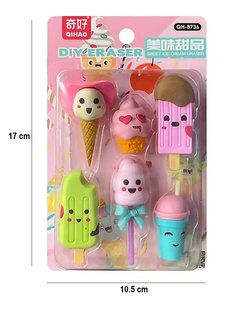 Borrador de Figuras de Helados y paletas X 6 unidades