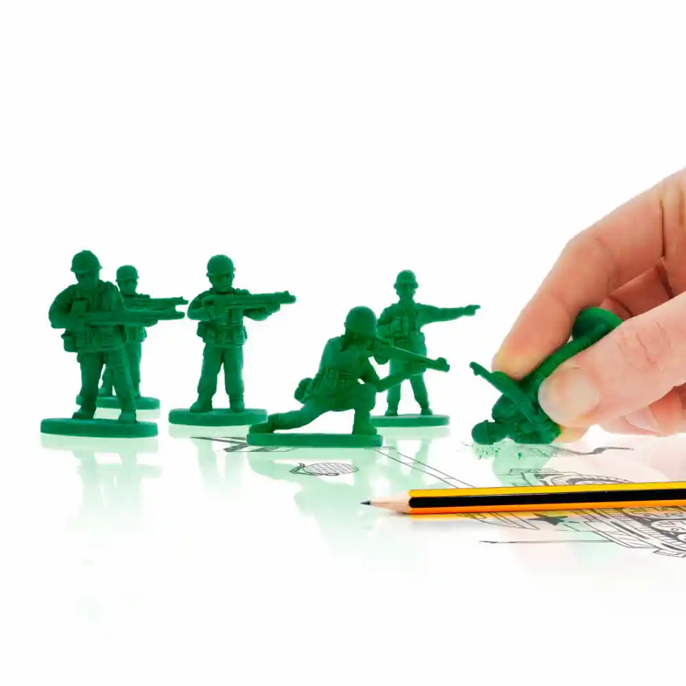 Goma de borrar soldados anterior goma de borrar soldados goma de borrar soldados goma de borrar soldados siguiente borradores en forma de soldados $ 9.900 impuestos inc. 140 artículos referencia m16008 condición: nuevo producto borradores en forma de soldaditos de guerra. Regalos funcionales, regalos divertidos, regalos originales mikasastore justmustard mustard 1 añadir al carrito añadir a la lista de deseos enviar a un amigo imprimir descripción del productoreseñas ahora tus borradores se convertirán en un pequeño batallón de soldados valientes que luchan para corregir esos errores de ortografía en tu cuaderno o libreta, llevando alegría y entretenimiento a cualquier lado. Paquete de seis borradores verdes brillantes imitando esos soldados de juguete de plástico que tanto te gustan. Especificaciones: • pack de 6 • diversas posiciones