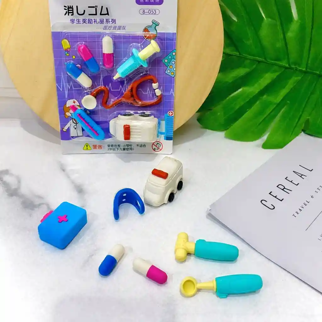Incluye: 7x Borradores medicina. *** SE ENVÍAN DISEÑOS O COLORES DE ACUERDO A LA DISPONIBILIDAD EN STOCK AL MOMENTO DE REALIZAR LA COMPRA, SI NECESITAS UN DISEÑO EN ESPECIAL DÉJANOS SABER ESCRIBIENDO AL CHAT PARA VALIDAR DISPONIBILIDAD** Importante: Debido a la diferencia de pantallas y efecto de la luz, el color real del artículo puede ser ligeramente diferente al color mostrado en las imágenes.