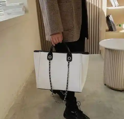 Bolso manos libres para dama en color Blanco con negro Medidas/ Alto:30cm Ancho:26cm