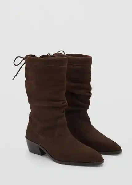Con 1 Par. 100% Piel Bovino Caña Fruncida Detalle de Cordón Punta Fina y Semiredonda Tacón Bloque - 17026331_30.