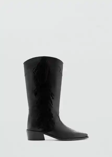 100% Piel Bovino Caña Alta Detalle de Flecos el Tacón Mide 3 cm Punta Fina y Semiredonda Tacón Bloque - 27071182_99.