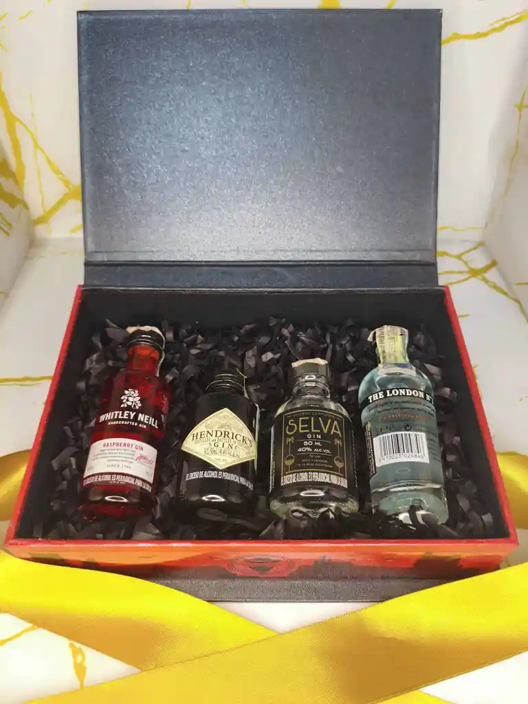 Eleva tus regalos al siguiente nivel con este set de mini licores en un estuche premium que combina elegancia y portabilidad. Ideal para cualquier ocasión: el detalle que todos recordarán. Y para que tu regalo sea 100% tuyo, tienes la opción de solicitar una tarjeta personalizada con foto y mensaje. Simplemente coordínalo por mensaje interno al confirmar tu compra. Contiene: Ginebra The London N°1 50 ml Gin Whitley Neill 50 ml Ginebra Selva Gin 50 ml Ginebra Hendricks 50 ml