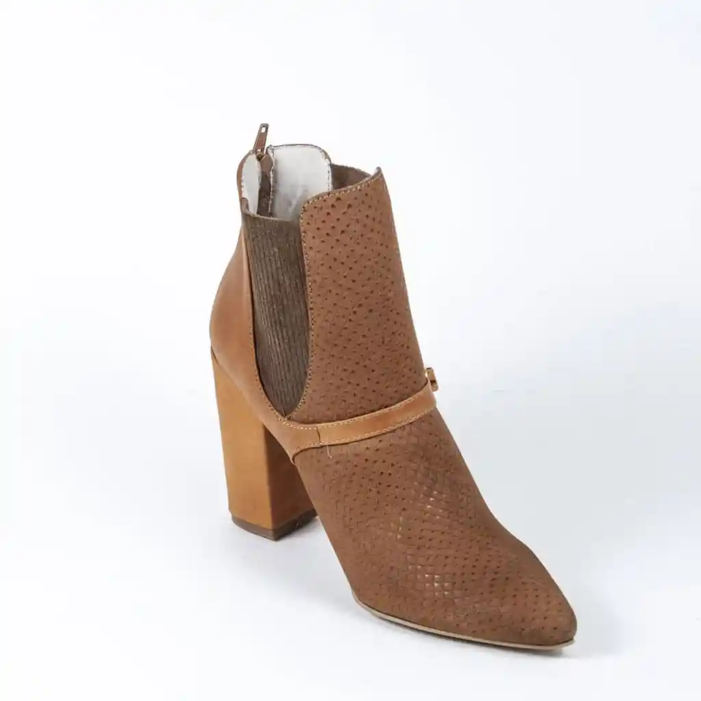 Bota color miel, efecto escama, tacón de 5 cm