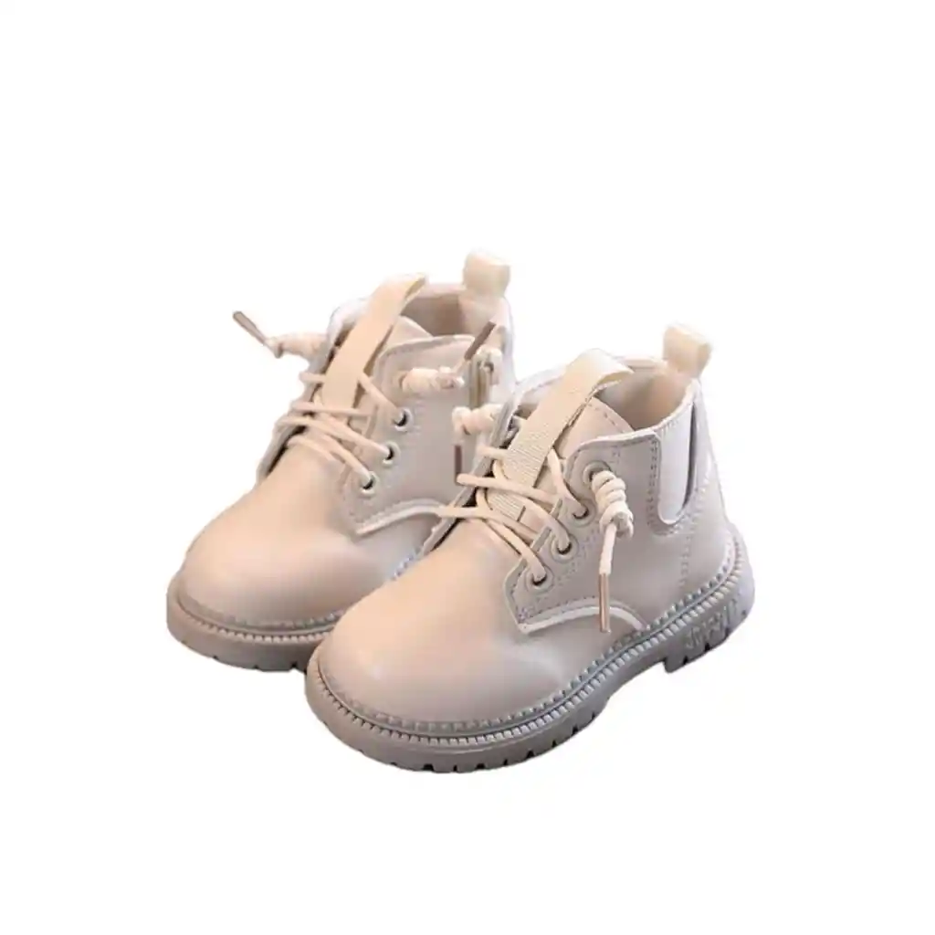 Botas en cuero sintetico con gordones y cierre a un lado en color Beige talla 27