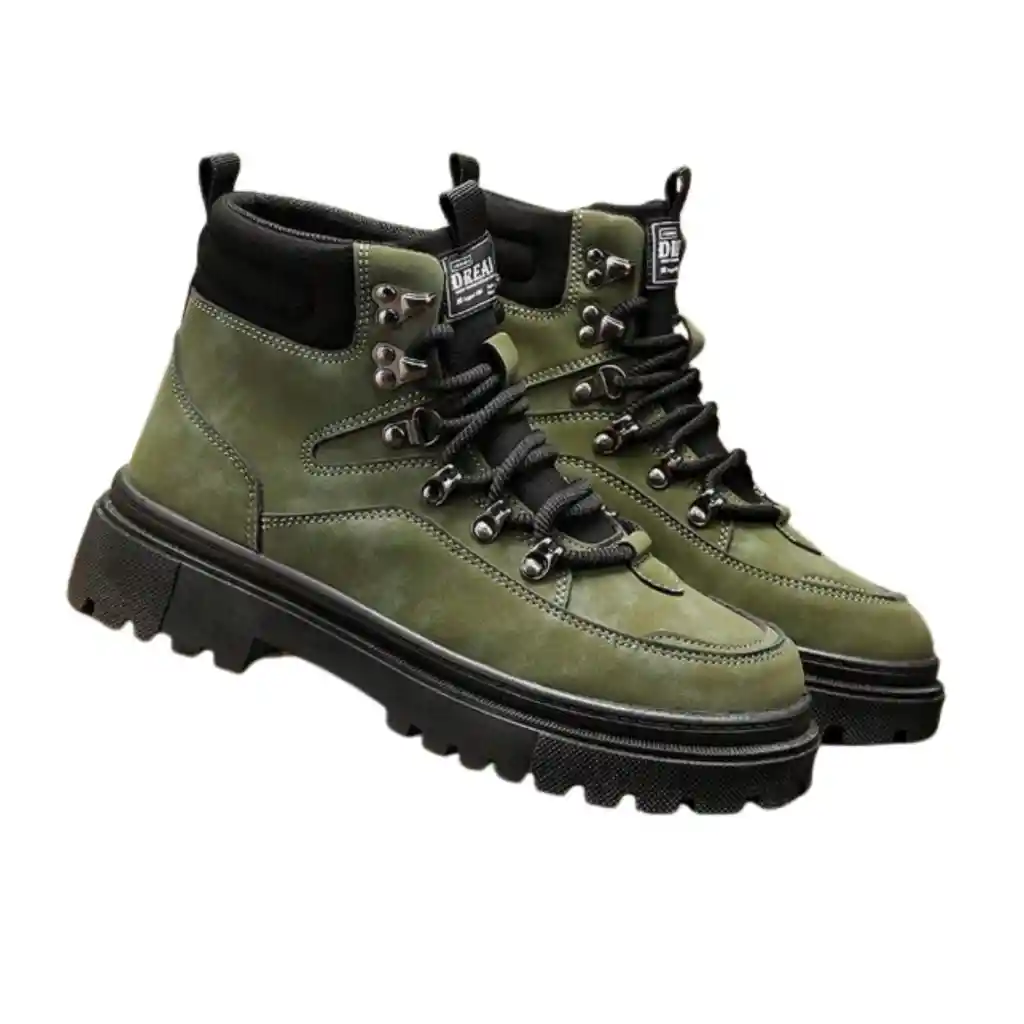 🥾 Botas de Senderismo BEAN CLASSIC – Estilo Rústico y Resistencia Total Explora sin límites con estas robustas botas de senderismo en tono verde militar. Su diseño de caña alta con acolchado en el tobillo brinda soporte y comodidad en cada paso. Los ojales metálicos y cordones negros aseguran un ajuste firme y duradero, mientras la suela negra antideslizante te acompaña en terrenos exigentes. 🎒 La escena se completa con una mochila tipo explorador en lona beige con detalles en cuero, perfecta para aventuras al aire libre. ¡Un dúo que inspira libertad y conexión con la naturaleza! ✨ Ideal para: Caminatas, trekking y escapadas 🌲 Looks outdoor con estilo vintage 🧭 Aventureros que valoran calidad y diseño 💪