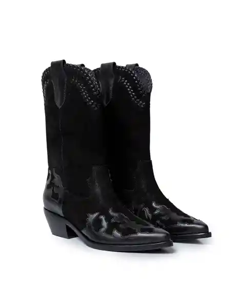 Par. Femenino. Media Punta Estilizada en Cuero Carnaza Con Sobrepuestos en Cuero Anilina Plena Flor 100% Piel Vacuno. Diseño Con Sobrepuestos Estilo Western. Puntadas Manuales en Parte Superior de Caña. Tacón de Madera 5 cm. Forradas en Cuero. Construcción Que Evoca Espíritu Del Oeste Con Identidad Texana. Ean- 261H009Neg194007 Plu- 1111133273113.