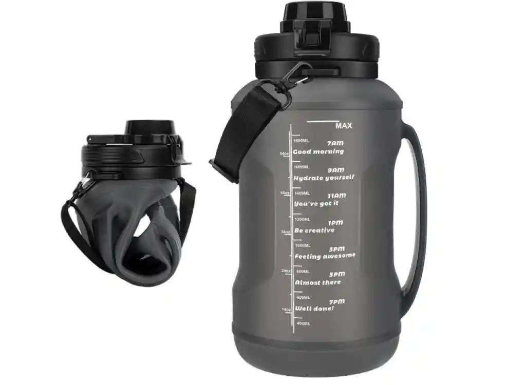 Botella Agua 2 Litros Botilito Silicona Plegable Hidratación CARACTERÍSTICAS * Termo Botella Agua 2 Litros Silicona Plegable Hidratación GYM Deportes. * Esta botella perfecta para ahorrar espacio, mantenerse hidratado y alcanzar tus objetivos diarios de agua sin complicaciones. * Capacidad de 2 litros * Material de silicona de grado alimenticio * Diseño plegable y compacto * Sistema de cierre seguro * Agarre antideslizante * Impresiones motivacionales * Marcador de tiempo y línea de agua * Incluye popote adicional * Asa cómoda para transportar * Ligera y fácil de llevar * Apta para bebidas frías y calientes * Ideal para viajes, gimnasio y actividades al aire libre. DESCRIPCIÓN: - Esta botella de agua plegable de silicona de 2 litros es perfecta para quienes buscan mantenerse hidratados sin comprometer espacio ni comodidad. Su diseño plegable y ligero permite que la lleves a cualquier lugar, desde el gimnasio hasta una caminata o la playa. Con un sistema de cierre seguro y un agarre antideslizante, esta botella evita derrames y es fácil de sostener durante actividades al aire libre o deportivas. ¿Por qué comprarla? A diferencia de los termos rígidos, esta botella ahorra hasta un 60% de espacio en tu mochila cuando está plegada y es más ligera, lo cual la hace ideal para actividades de alta movilidad. Además, cuenta con un popote y asa adicionales, así como impresiones motivacionales y un marcador de tiempo para ayudarte a alcanzar tus metas de hidratación diaria. Es versátil y cómoda para llevar tanto bebidas frías como calientes, adaptándose a tus necesidades en cada momento. ESPECIFICACIONES: * 1 Botilito Agua Plegable * Material: Silicona * Medidas: - Ancho: 12cm - Alto: 27cm - Peso: 300 Gr * Color: Negro, Azul Oscuro, Verde