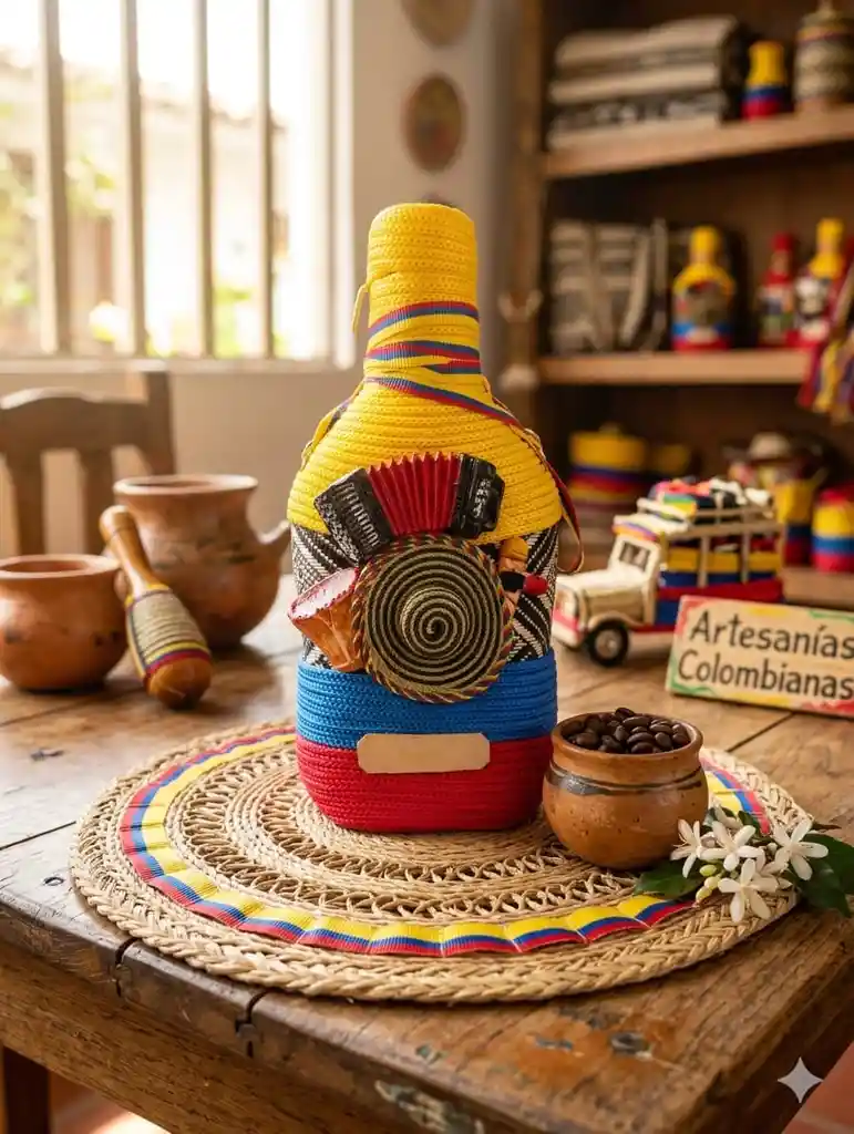 Botella decorada colores Colombia, ideal para un presente.