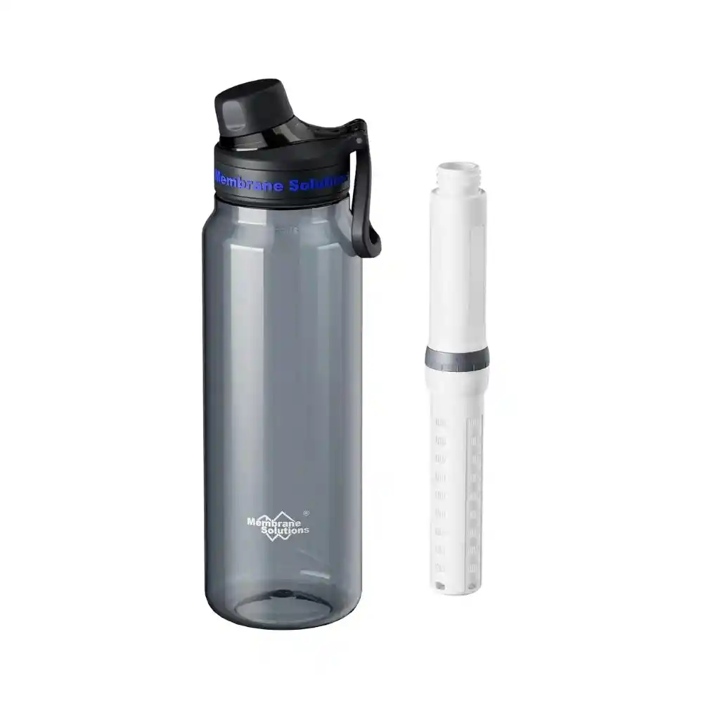 Nuestra botella purificadora de agua está diseñada para ofrecerte agua potable limpia y segura estés donde estés. Fabricada con Tritan de alta calidad, resistente y libre de BPA, combina un diseño práctico con un sistema de filtración avanzado de doble etapa, ideal para actividades al aire libre y el día a día. Características destacadas Filtración de doble etapa: Esta botella cuenta con dos tecnologías de purificación integradas: Fibra de Carbón Activado (ACF): reduce el cloro, elimina malos olores y mejora el sabor del agua. Tiene una capacidad de filtrado de hasta 500 litros, con un flujo máximo de 800 ml por minuto. Ultrafiltración (UF): elimina parásitos, bacterias y microplásticos gracias a su membrana de 0.1 micras. Filtra hasta 4,000 litros con un flujo máximo de 500 ml por minuto. Material duradero y seguro Hecha de Tritan, un material resistente a impactos, libre de BPA y apto para uso alimentario. Ideal para uso frecuente en exteriores e interiores. Diseño funcional y portátil Su diseño incluye una asa fija integrada al cuerpo de la tapa, que facilita el transporte manual. Su boquilla abatible permite beber cómodamente sin derrames Uso versátil Perfecta para senderismo, camping, pesca, entrenamiento, viajes y situaciones de emergencia. Su sistema de filtración elimina contaminantes del agua de ríos, lagos, grifos y otras fuentes naturales o urbanas. Especificaciones Capacidad: 1064.65 ML (1.6 litros) Material: Tritan (libre de BPA) Vida útil del filtro: ACF: hasta 500 litros UF: hasta 4,000 litros Tamaño de poro del filtro UF: 0.1 micras Flujo máximo: ACF: 800 ml/min UF: 500 ml/min Dimensiones aproximadas: 23.5 cm de alto x 7.5 cm de diámetro Colores disponibles: Azul y Gris