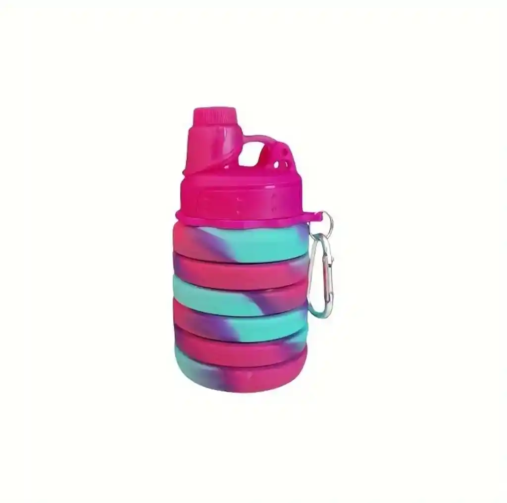 Botella de agua deportiva plegable de silicona con tapa, portátil , a prueba de fugas, sin BPA, ahorro de espacio, ecológico, botella de viaje