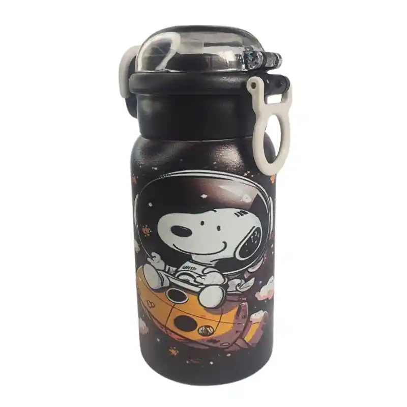 Botella De Agua Infantil en Acero Inoxidable con Popote 2en1 Hermoso termo infantil con diseño de Snooopy astronauta, ideal para niños que aman el espacio y los personajes clásicos. Práctico, resistente y con doble sistema de uso. Características principales: • Diseño exclusivo Snooopy astronauta • Material interior en acero inoxidable • Altura del termo: 15 cm • Diámetro aproximado: 7,5 cm • Tapa de 9 cm de diámetro • Sistema de apertura “one push” con 2 botones • Dos opciones de uso: Opción 1 con popote Opción 2 tipo vertedor • Tapa con seguro y asa lateral para transportar • Incluye popote interno de 13 cm • Tamaño ideal para lonchera escolar Ventajas: • Sistema antiderrames con cierre seguro • Fácil de abrir para niños • Compacto y ligero • Perfecto para colegio, salidas o viajes Ideal para: • Regalo infantil • Uso diario en colegio • Coleccionistas de Snooopy