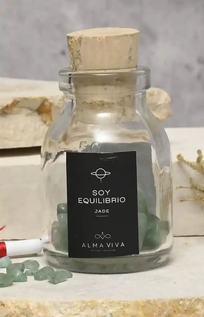 Jade: es la piedra del equilibrio , el ímpetu y la concentración (intenciona tu botella, escribiendo en el pergamino tus propósitos e intenciones conecta con la energía de tu cuarzo .)