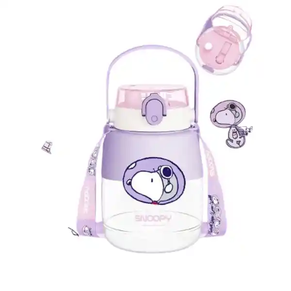Miniso Trae Para ti Esta Linda Botella de Plástico de 1300 mL Con Correa Seie Snoopy. Instrucciones de Uso: Abra el Producto y Antes Del Primer Uso Lave Con Jabón Neutro. Vierta la Bebida a Almacenar y Cierre. Precauciones y Advertencias: Temperatura Adecuada Para el Vaso: 0C - 50C. Diseñado Para Agua o Bebidas Frías. No lo Utilice Para Bebidas Calientes. No Apto Para Microondas Lavavajillas y Horno. No Esterilice Con Agua Hirviendo o Vapor Para Evitar Desfigurar la Botella. No lo Utilices Para Almacenar o Transportar Bebidas Carbonatadas Cerveza o Alimentos Que Contengan Más Del 13% de Alcohol. Producto de Plástico Manipular Con Cuidado. Mantener Alejado Del Fuego y Del Calor. Guardar en Lugar Fresco y Seco. Los Niños lo Deben Usar Bajo Supervisión de un Adulto. Evite Golpes.