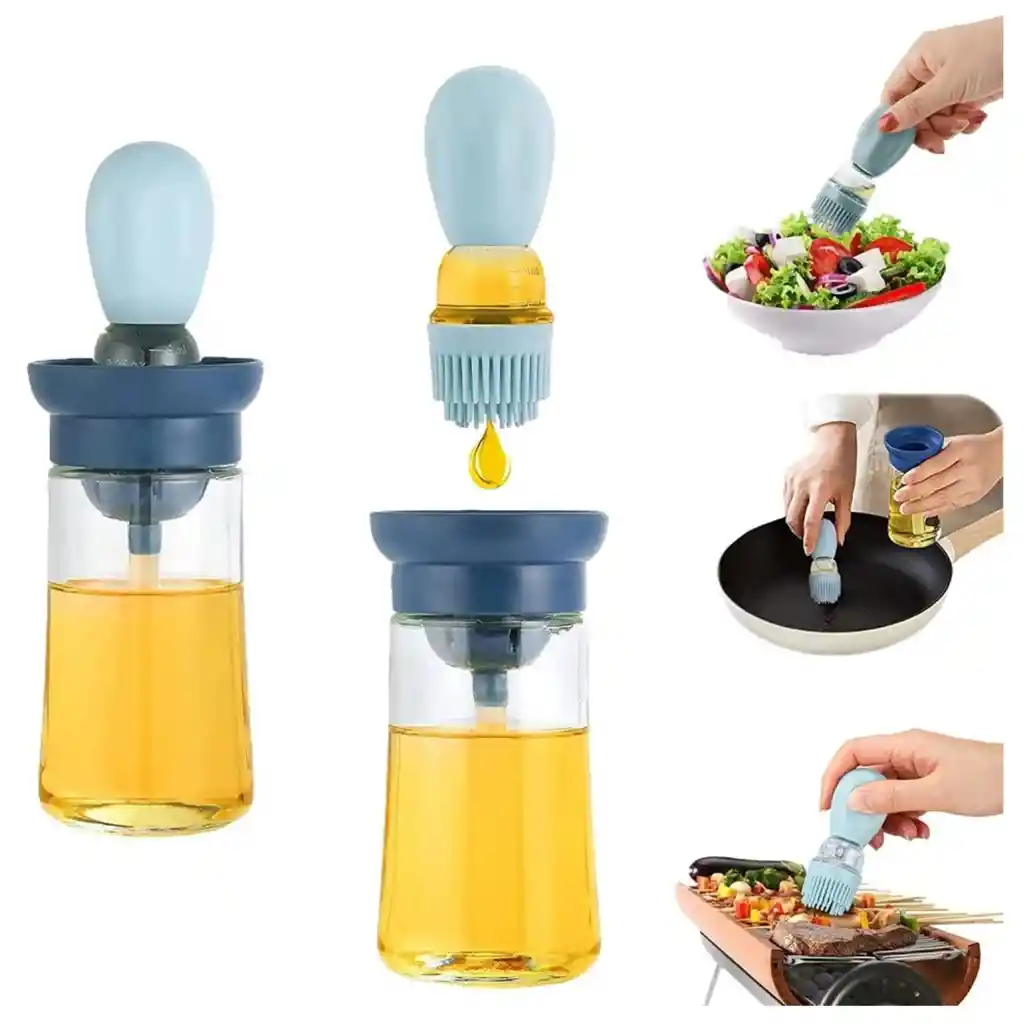 Botella Dispensadora De Aceite Con Brocha De Silicona Color Azul