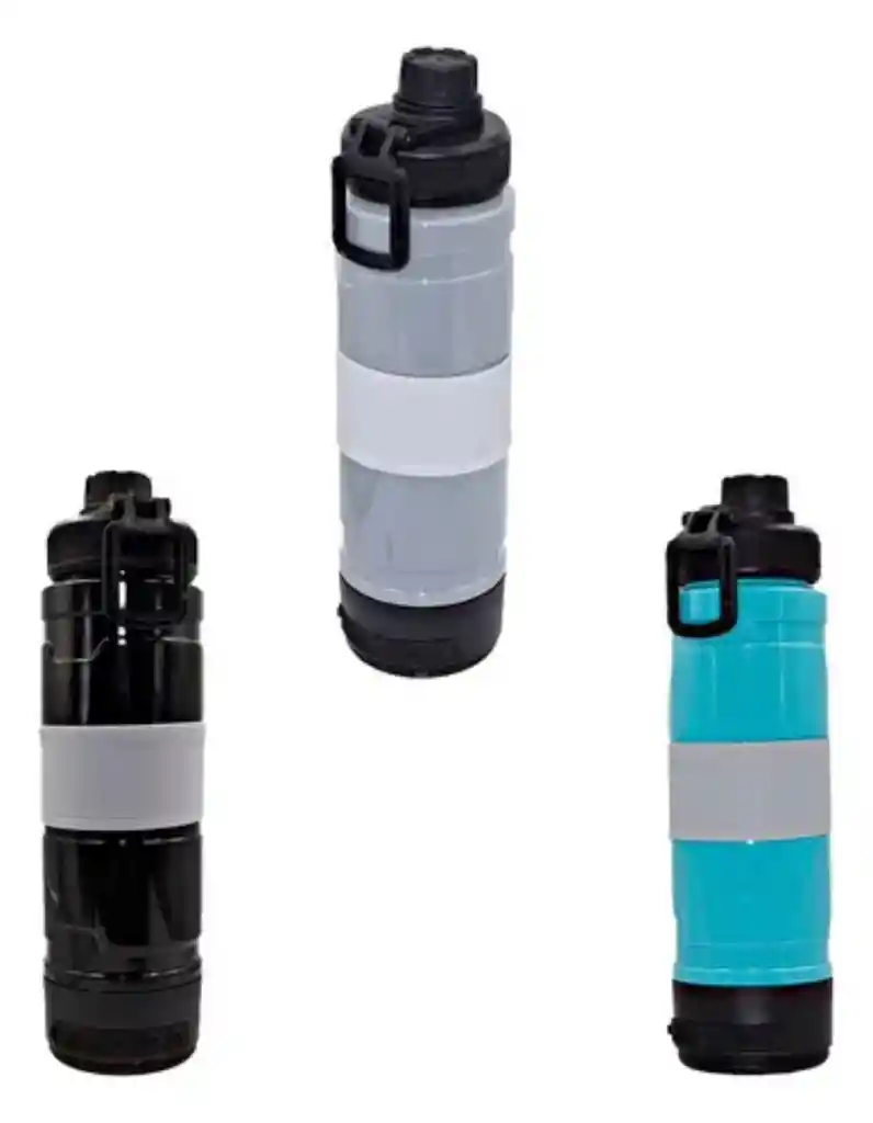 El artículo es una botella de agua recargable con altavoz Bluetooth integrado, ideal para actividades al aire libre. Capacidad/Volumen: 650ml. Material: Plástico resistente. Características: Altavoz Bluetooth recargable integrado en la base inferior. Uso: Diseñada para deportes y camping.
