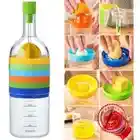 Botella 8 en 1 multi propósito La botella con utensilios de cocina sustituye a algunos utensilios. Sobre una taza de medición se apilan seis accesorios diferentes, lo que supone un verdadero enriquecimiento a la hora de cocinar. Ya sea batiendo, separando huevos, abriendo vasos o exprimiendo jugo usted puede hacerlo todo con un solo instrumento. Además, la parte superior de la botella sirve de embudo. Este regalo encajará en cualquier hogar y hará las delicias de todos aquellos a los que les guste cocinar y hornear. Especialmente aquellos que tienen poco espacio apreciarán esta botella. Haga feliz a un ser querido y úsenla juntos para preparar algo delicioso. Esta versátil ayuda de cocina no sólo tiene innumerables funciones, sino que también ofrece otras ventajas. La botella se puede guardar de forma que ahorra espacio. Gracias a los diferentes colores, los implementos se distinguen rápidamente entre sí. Y al final, el utensilio de cocina multifuncional es incluso más barato que comprar todos los accesorios individualmente. Contiene 8 accesorios: 1 embudo, 1 exprimidor de limón 1 picadora de especias 1 separador de huevos 1 Rompe huevos 1 quesero 1 abre pomos de silicona 1 taza medidora 400 ml. Material: Plástico PP., Tamaño 8X27,5cm., Peso 180 g/pc.