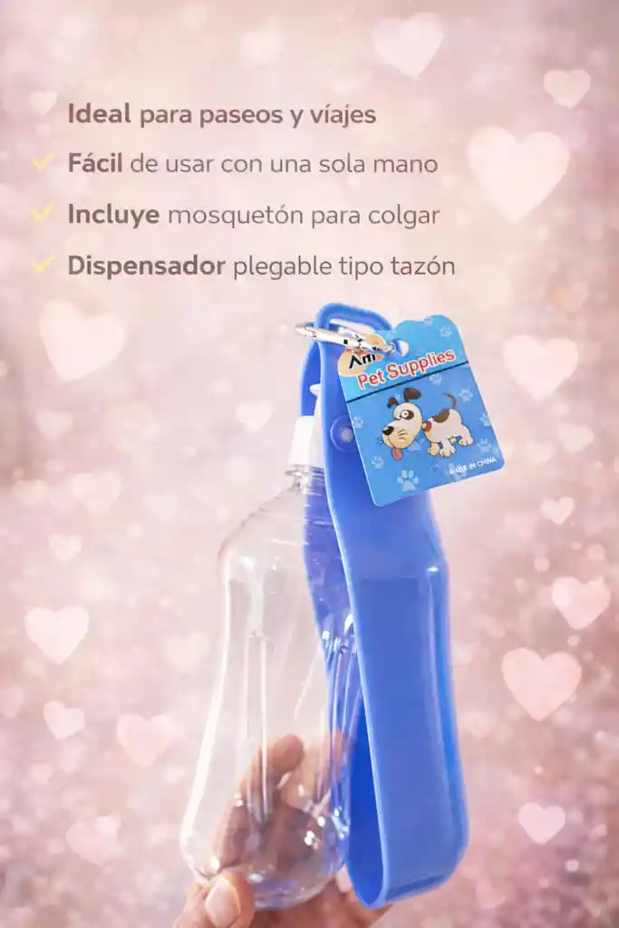 🐾 Características del producto Botella portátil con dispensador integrado Diseño 2 en 1: botella + tazón plegable Material ligero, resistente y fácil de transportar Sistema de salida de agua controlado (evita derrames) Incluye mosquetón para colgar en mochila o correa Ideal para perros pequeños, medianos y gatos 💧 Modo de uso Llena la botella con agua potable Abre el dispensador (parte azul) Inclina la botella y presiona suavemente para que salga el agua Permite que tu mascota beba directamente del tazón Puedes devolver el agua sobrante a la botella Cierra y guarda fácilmente después de usar ❤️ ¿Por qué todo dueño de mascotas debe tenerlo? Mantiene a tu mascota hidratada en todo momento Perfecto para paseos, viajes y actividades al aire libre Evita usar recipientes sucios o improvisados Es práctico, higiénico y fácil de usar con una sola mano Fortalece el cuidado y bienestar de tu mascota Demuestra amor: tu mascota depende de ti para su salud 🐶💙