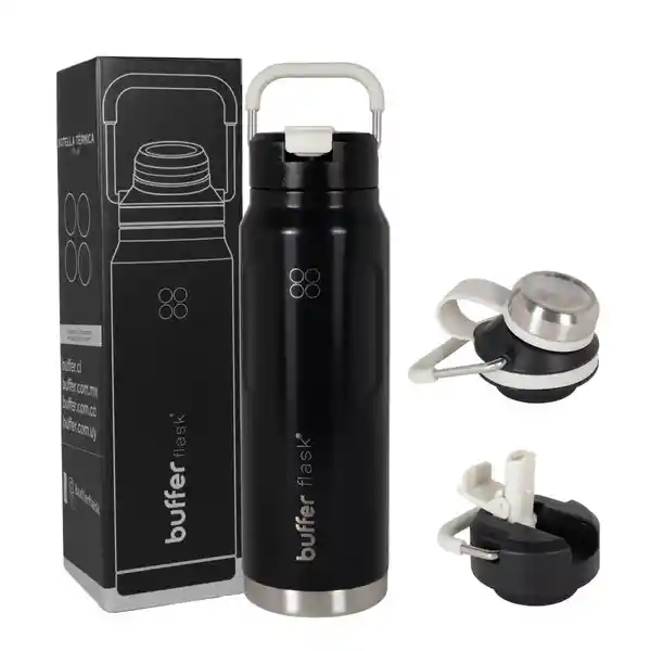 Si eres de los que anda con su café por la mañana y su agua helada por la tarde, esta botella es para ti. La botella térmica Buffer de 710 ml está diseñada para acompañarte en todas: desde el trabajo, el gym, hasta el transporte público o una caminata. Mantiene tus líquidos fríos por 24 horas y calientes por hasta 12, así que siempre tendrás tu bebida en la temperatura perfecta. Viene con dos tapas intercambiables, para que la uses como más te acomode: con Pitillo para tomar rápido o con tapa rosca cuando prefieras cerrarla firme. Además, está hecha de acero inoxidable 304, libre de BPA y plomo, con un diseño moderno que no pasa piola y un asa cómoda para llevarla a todos lados. Una botella funcional, bonita y duradera. Porque no se trata solo de hidratarse... ¡sino de hacerlo con estilo! - Mantiene tus bebidas frías 24 h y calientes 12 h - 2 tapas incluidas: Pitillo + tapa rosca - Acero inoxidable 304: resistente, duradero y seguro - Libre de BPA y plomo: cuida tu salud - Tapa con manilla: fácil de llevar - Diseño moderno y funcional, disponible en 2 colores ____________________________________________________________________ Ficha técnica: - Producto: Botella térmica 710 ml Buffer - Capacidad: 710 ml - Material: Acero inoxidable 304 (18/8) - Libre de: BPA y plomo - Tapas: 1 tapa con Pitillo 1 tapa rosca - Duración térmica: Frío: hasta 24 horas Calor: hasta 12 horas - Uso recomendado: Ideal para deporte, oficina, transporte, estudio, viajes o uso diario _____________________________________________________________________ QUE VIENE EN LA CAJA - 1 Botella buffer 710 ml - 2 Tapas intercambiables **Buffer Flask® es distribuida en Colombia y Sudamérica exclusivamente por Builder Commerce SAS** ¿QUÉ TAPAS INCLUYE? Pitillo : ideal para bebidas frías, esta cómoda tapa incluye un Pitillo para beber tus líquidos favoritos. Rosca pequeña: Permite el paso de sorbos más pequeños de agua, ideal para utilizar en movimiento. ____________________________________________________________________ PREGUNTAS FRECUENTES: ¿Cómo puedo lavar mi botella? Evita elementos abrasivos para no dañar las superficies. Te recomendamos usar nuestro kit de limpieza, que puedes encontrar en nuestro catalogo ¿Es anti derrame? Si, las botellas Buffer cuentan con un sistema seguro antiderrame, puedes llevarla en tu mochila sin riesgo de fugas.