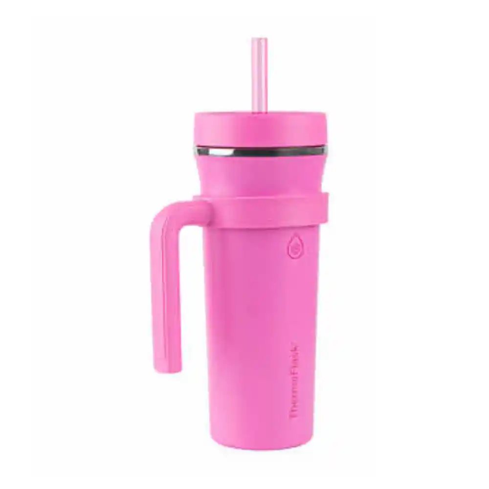 El vaso con pajita de acero inoxidable ThermoFlask de 32 oz con asa extraíble te mantiene hidratado mientras te desplazas. El aislamiento al vacío de doble pared evita la transpiración y mantiene los líquidos helados hasta 24 horas. Este práctico tamaño se adapta perfectamente a la mayoría de los portavasos, por lo que puede llevarlo en el coche o utilizarlo mientras corre en la cinta o en bicicleta. Ideal para las aventuras diarias, la tapa de rosca de boca ancha es fácil de limpiar y rellenar.