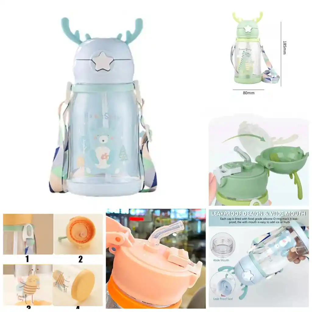 BOTELLA DE AGUA PARA NIÑOS Vaso pitillo de bebidas con creativos dibujos y colores, tapa a prueba de fugas, fácil de usar, limpiar y llevar a todas partes. Capacidad: 600ml Tamaño: 22,5*8,5 cm Material: silicona + PC + PP