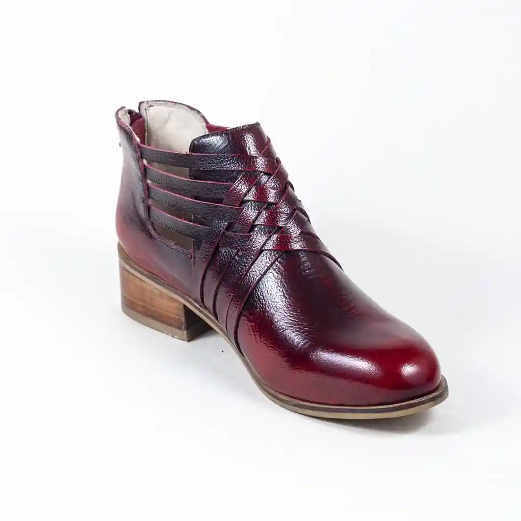 Botín en cuero 100% con acabado tonalidad vinotinto