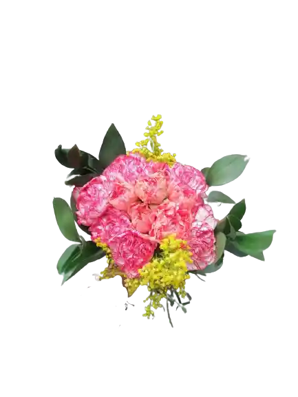 Arreglo floral de 12 claveles de 30 cm de largo aproximadamente (Color según disponibilidad). Incluye decoración y tarjeta (Indicar en el chat el mensaje).