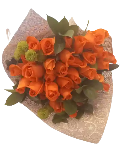 25 rosas en bouquet en yute o papel, color sujeto a disponibilidad