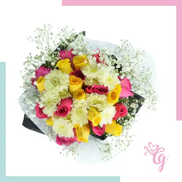 24 Rosas Amarillas Y Fucsia