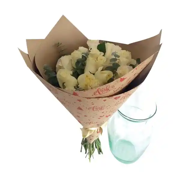Rosas Blancas Mas Jarron en Cristal; Tarjeta De/Para y Moño