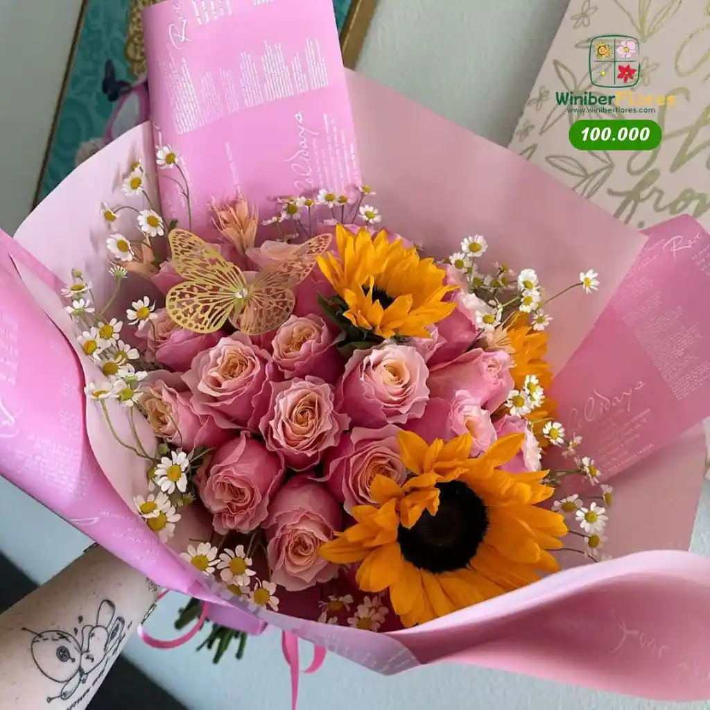 Bouquet 24 Rosas Y Girasoles