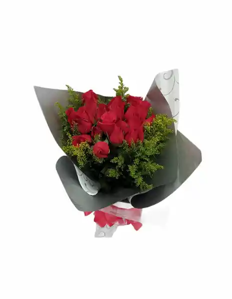 Incluye: Bouquet de Rosas Rojas Con Follaje Verde 36 Und + Papel Decorado 1 Und + Capuchón 1 Und + Moño 1 Und