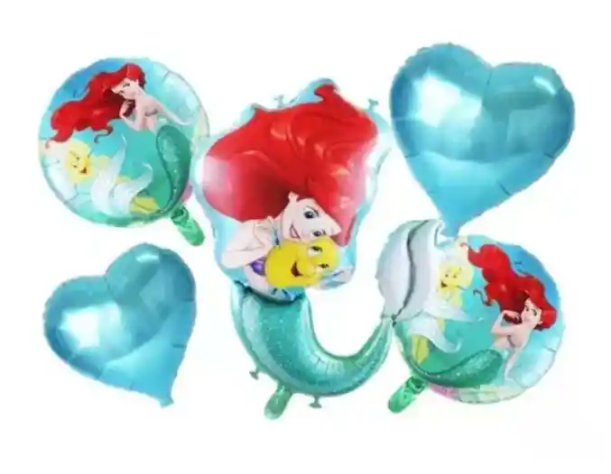 Por tu compra llevas: -2 Globos corazón azul claro 45cm -2 Globos temática sirenita 45cm -1 Globo sirenita 65×45 cm Nota: los globos van desinflados