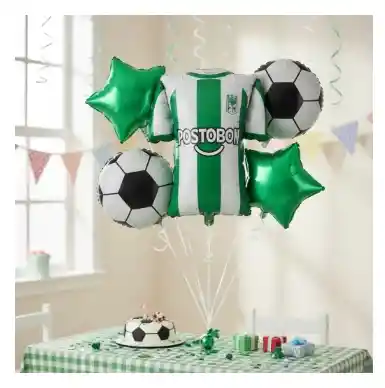 El bouquet de 5 globos metalizados con diseño de fútbol es la solución decorativa completa para transformar cualquier espacio en una celebración temática deportiva inolvidable. Este kit ha sido cuidadosamente seleccionado para ofrecer una composición armoniosa que incluye un globo principal de gran tamaño con forma de balón y globos complementarios en formas Sin garantía Se envían desinflados de estrellas o círculos, todos bajo la misma línea estética de blanco y negro.