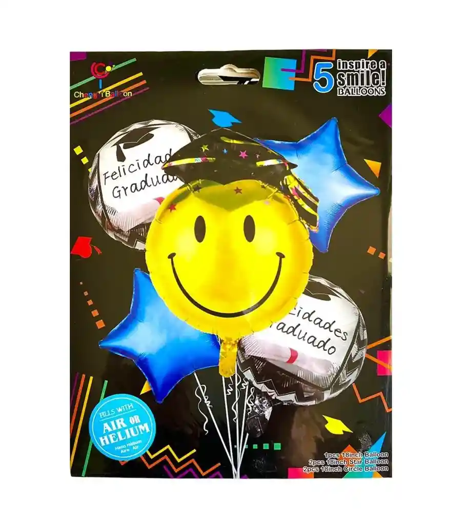🎓 BOUQUET GLOBOS METALIZADOS GRADO X 5 UNIDADES ⚠️ Se envía desinflado. Se puede inflar con aire. No requiere helio Para inflar sus globos metalizados o globos de látex, tenemos disponible en nuestra tienda el INFLADOR MANUAL. No olvide incluirlo en su pedido