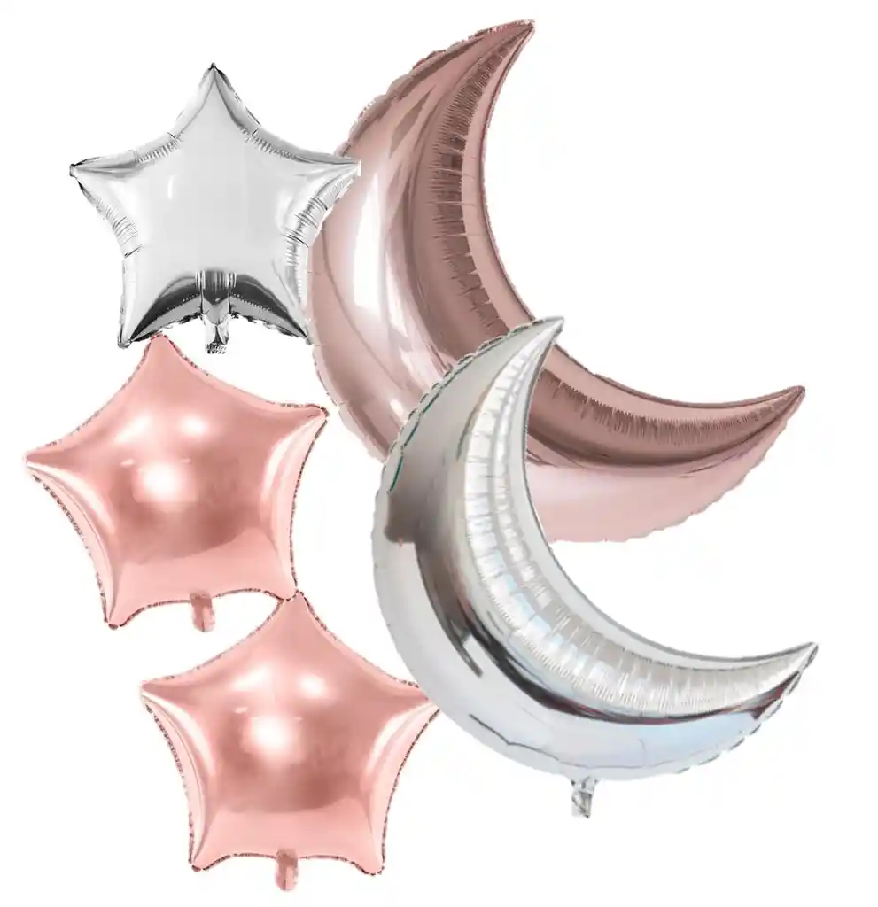 Bouquet 5 Piezas Lunas Y Estrellas Globos Metalizados