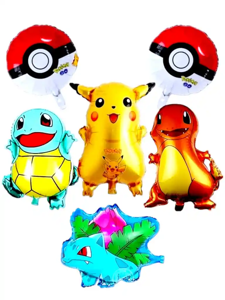 Globo Metalizado Bouquet Infantil PIKACHU pokemon Descripción: 1 GLOBO PIKACHU DE 60X50 1 GLOBO CHARMANDER DE 68X50 1 GLOBO SQUIRTLE DE 60X50CM 1 GLOBO BULBASAUR DE 54X60 CM 2 Globos POKEBOLA de 45 CM